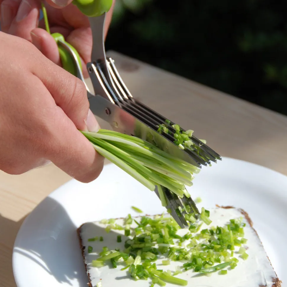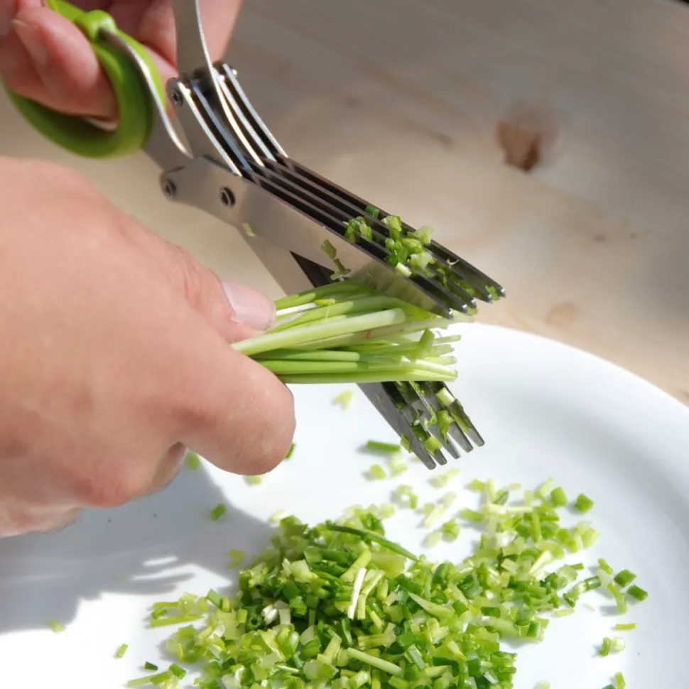 Frische Kräuter schmecken hervorragend und passen zu vielen Gerichten. Noch nie ging das Kleinschneiden so schnell wie mit dieser speziellen Kräuterschere. Anstelle einer herkömmlichen Schere mit zwei Klingen hat diese Schere zehn Klingen. So können Schnittlauch und andere Kräuter schnell und gleichmäßig geschnitten werden, ohne sie zu zerdrücken.