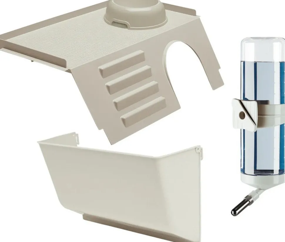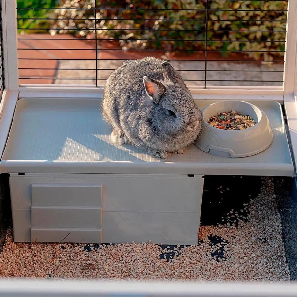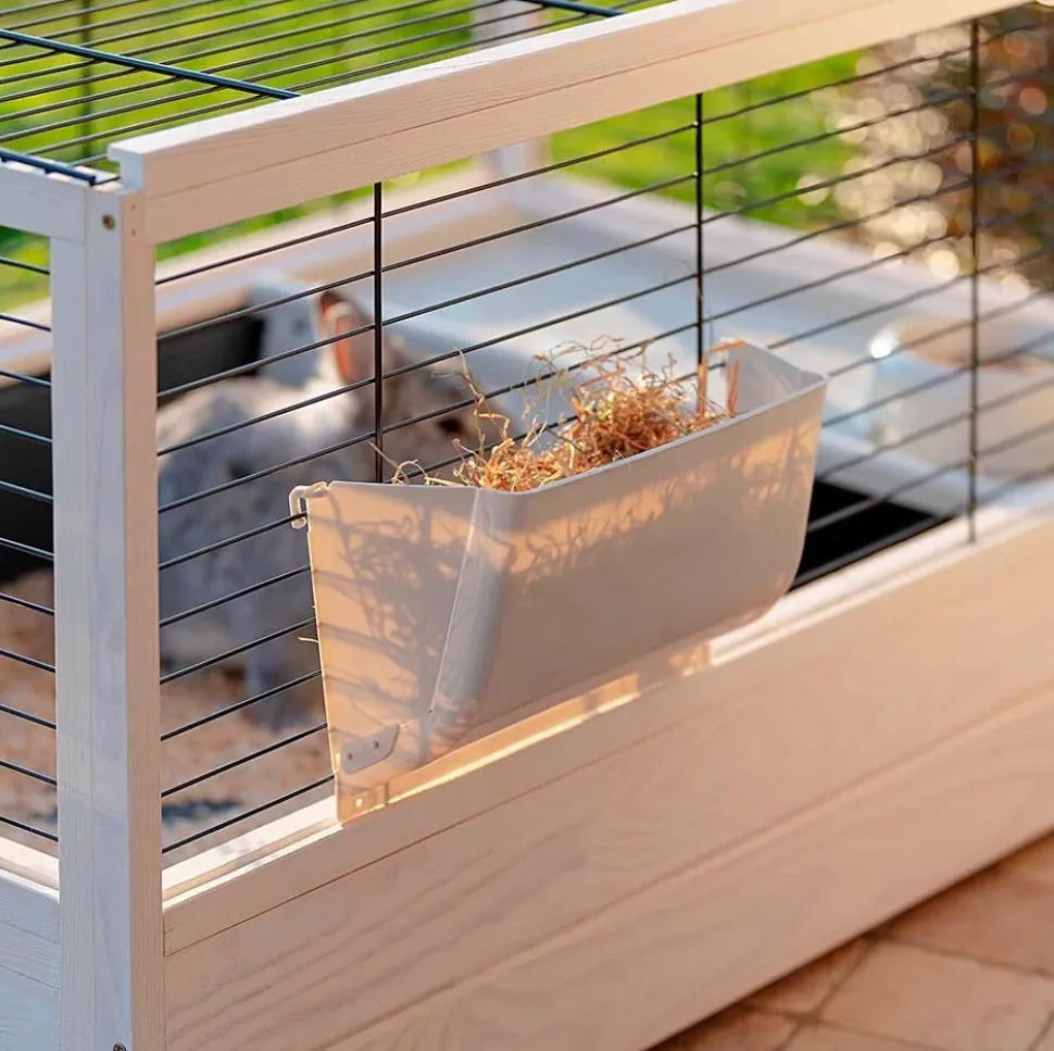 Dieser Kaninchenstall ist mit allem Komfort ausgestattet, um dein Haustier von Anfang an willkommen zu heißen: Heuraufe, Futterschale aus Kunststoff und Trinkflasche, ein Haus mit praktischem Dach und Leiter. Das Ganze ist sehr stabil und mit Füßen ausgestattet, die einen perfekten Stand gewährleisten.