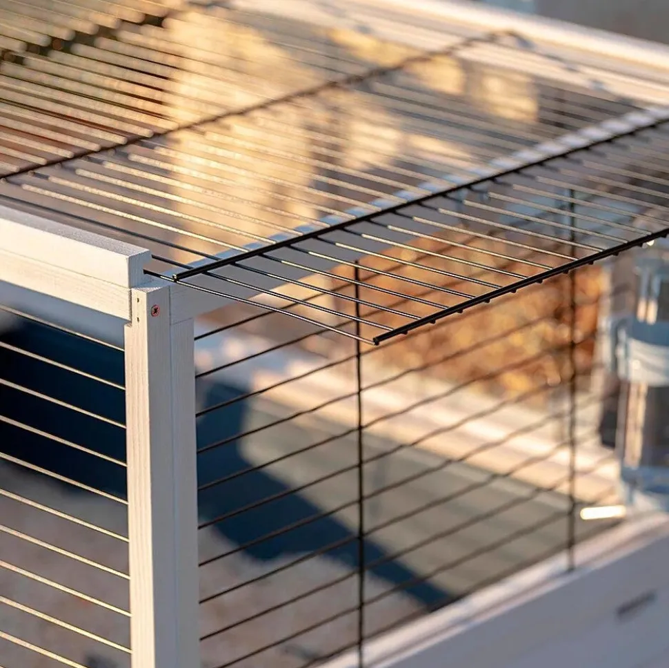 Das schwarz lackierte Drahtgitter ist solide und langlebig und passt perfekt zur neutralen Farbe des Holzes.