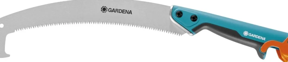 Die GARDENA combisystem-Gartensäge gebogen mit einer Sägeblattlänge von 315 mm ist flexibel einsetzbar – je nachdem, wo du sägst: Wenn du gut erreichbare Äste schneiden möchtest, verwende die Gartensäge „ganz normal“ als Handsäge. Dank ergonomischem Handgriff mit angenehmen Soft-Kunststoff-Komponenten liegt die Säge dabei gut in der Hand. Und wenn du Äste in bis zu 5 Metern Höhe schneiden, verlängere die Gartensäge einfach mit einem teleskopierbaren combisystem-Stiel. Praktisch: einfach den combisystem-Stiel fixieren. Der Sicherheitsverschluss garantiert eine sichere Verbindung.
