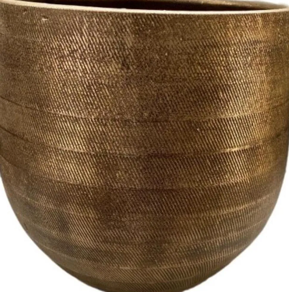 Dieser Blumentopf Nagano aus der HS Kollektion ist eine echte Bereicherung für deine stilvolle Einrichtung. Mit seiner schönen goldenen Farbe bringt der Blumentopf noch mehr Farbe in dein Zuhause. Stelle den Blumentopf zum Beispiel auf deinen Wohn- oder Esstisch und stelle eine schöne Pflanze hinein! Der Topf weist ein gleichmäßiges Linienmuster auf. Er ist für den Innenbereich geeignet, hat einen Durchmesser von 28 cm und eine Höhe von 26 cm.