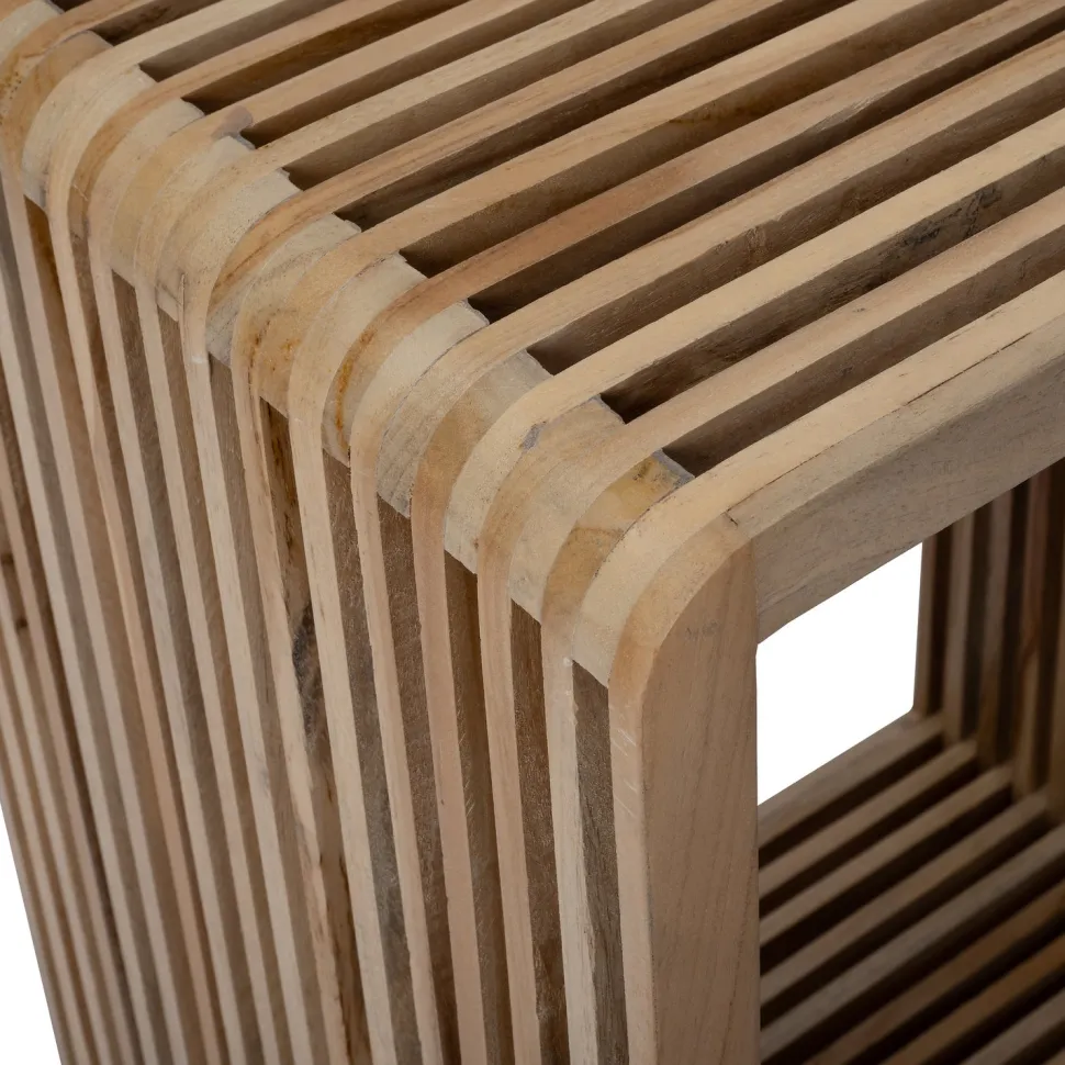 Beistelltische sind multifunktionale Stimmungsmacher, die sich immer als praktisch erweisen. Sie sind nützlich, um einen Snack oder ein Getränk abzustellen, aber mit verschiedenen Pflanzen und Accessoires kann ein Beistelltisch Ruhe und Einheit schaffen. Durch seine kompakte Größe und sein geringes Gewicht lassen sie sich unkompliziert umstellen. Der Beistelltisch Per ist aus Teakholz und Metall gefertigt und strahlt sowohl Luxus als auch Eleganz aus. Der Beistelltisch hat eine natürliche Holzfarbe und eine Größe von 40 x 30 x 60 cm.