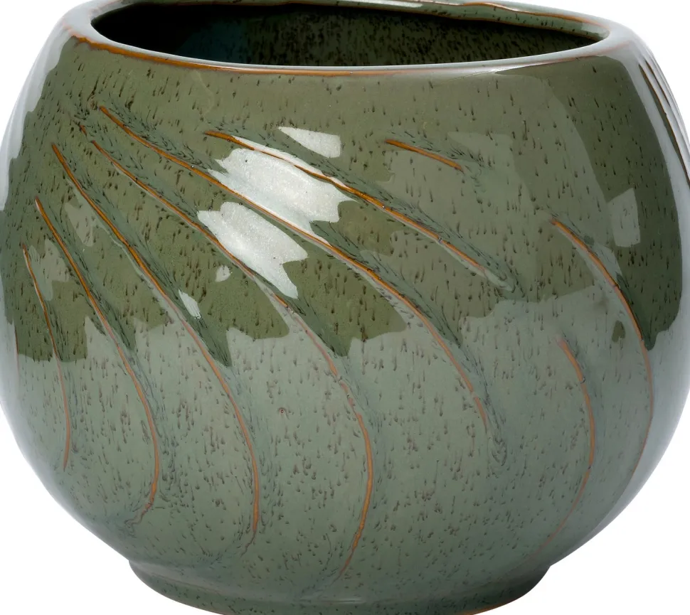 Veredle dein ganzes Wohnzimmer mit diesem schönen Blumentopf Dorit aus der Kollektion von Intratuin. Dieser Übertopf hat eine schöne grüne Farbe, die deinem botanischen Interieur auf subtile Weise noch mehr Farbe verleiht. Die Oberfläche des Blumentopfs ist glasiert, was ihm noch mehr Ausstrahlung verleiht. Außerdem hat er anmutig geschwungene Linien und ein dezentes Pünktchenmuster, was ihm einen hohen Dekogehalt verleiht.