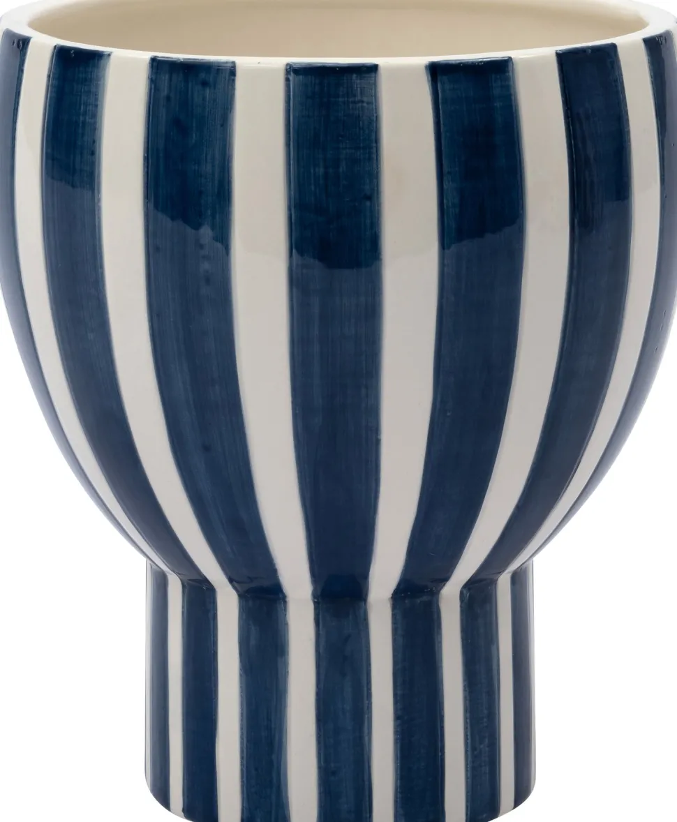 Mit diesem coolen Blumentopf Inas aus der Intratuin-Kollektion hast du einen echten Blickfänger im Haus! Der Blumentopf Inas ist in der Tat wunderschön gestaltet, hat eine schöne glasierte Oberfläche mit Streifen in den Farben Blau und Weiß und eine kreative Form