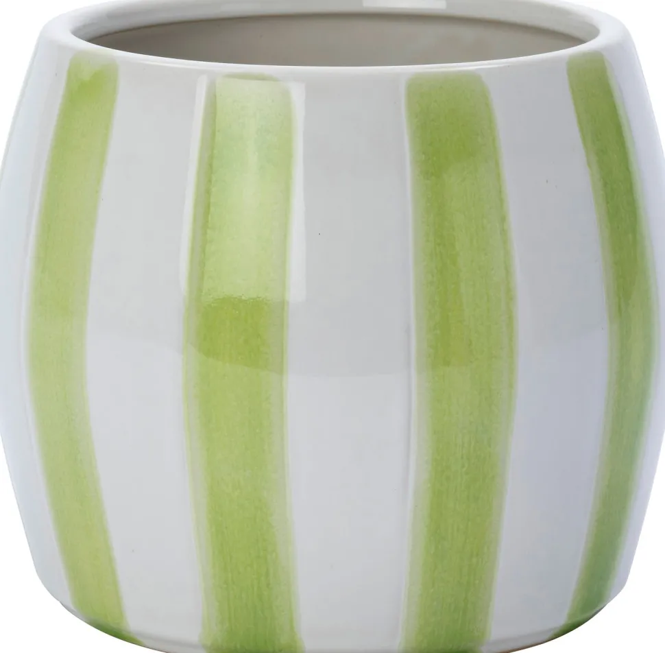 Der Blumentopf Adora von Intratuin ist ein echter Blickfang für dein Zuhause. Mit seiner stilvollen, glasierten Oberfläche in Weiß mit grünen Streifen hat er einen verspielten Look. Dieser Blumentopf aus Keramik hat einen Durchmesser von 8,8 cm und eine Höhe von 6,5 cm, perfekt für deine Lieblings-Zimmerpflanze. Stelle den Blumentopf Adora an einen sicheren Ort, denn Keramik ist zerbrechlich. Der Blumentopf Adora ist in verschiedenen Farben und Größen erhältlich.