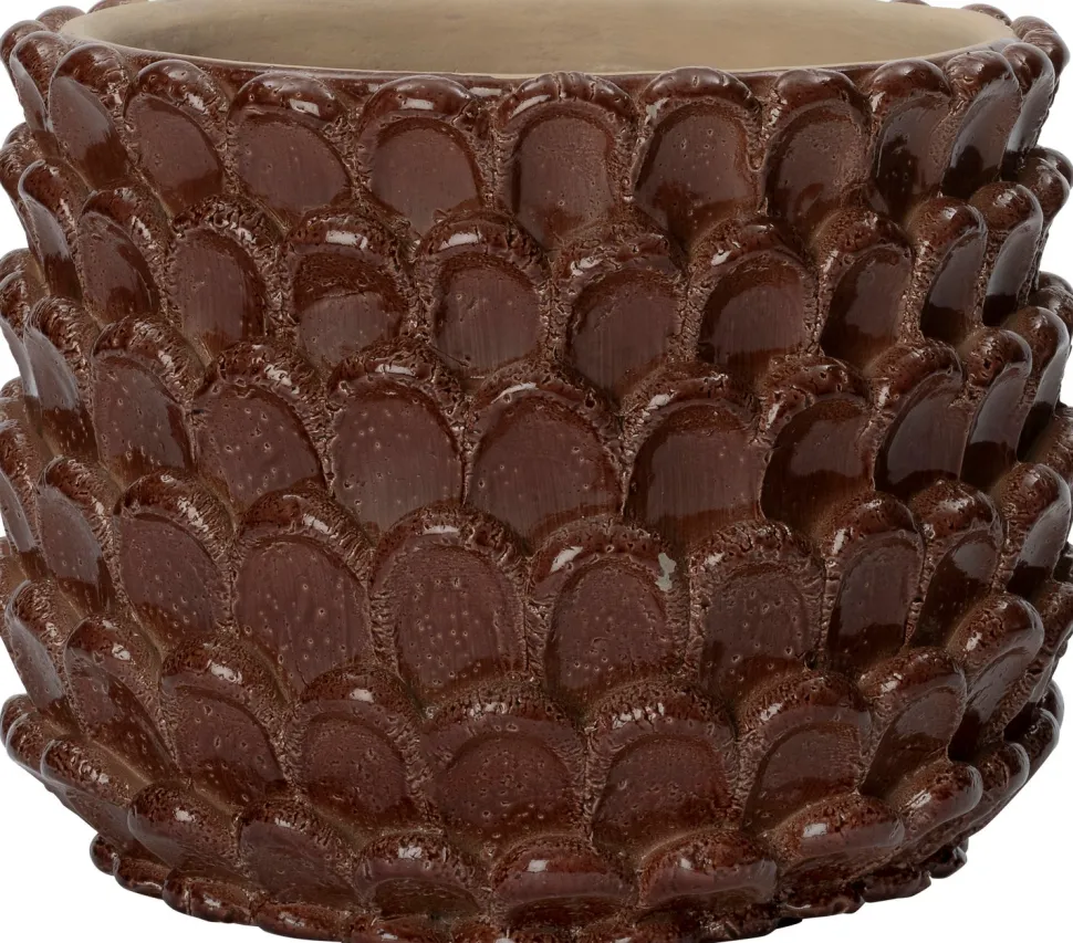 Verschönere dein Wohnzimmer mit diesem coolen Blumentopf Selby aus der Intratuin-Kollektion. Er ist in einem schönen, warmen Braun gehalten und mit einer Hochglanzoberfläche versehen, die ihn zu einem echten Blickfang macht. Das Wellenmuster verleiht dem Blumentopf Selby eine besonders dekorative Note.