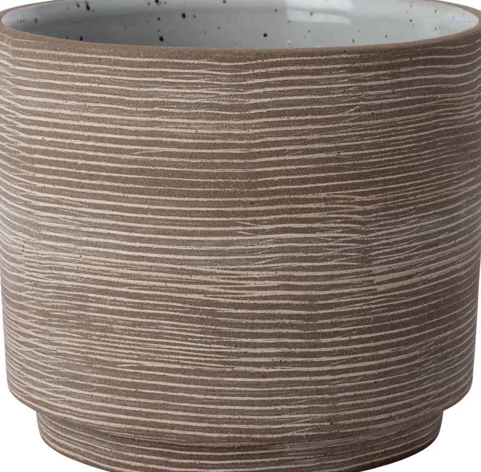 Möchtest du dein Wohnzimmer auf subtile Art und Weise gestalten? Dann ist dieser Blumentopf Zelda aus der Kollektion von Intratuin genau das Richtige für dich. Zelda ist ein Blumentopf mit ländlichem Charakter in einer rustikalen, sandbraunen Farbe und fügt sich daher leicht ein. Ein schönes Detail ist das horizontale Linienmuster!
