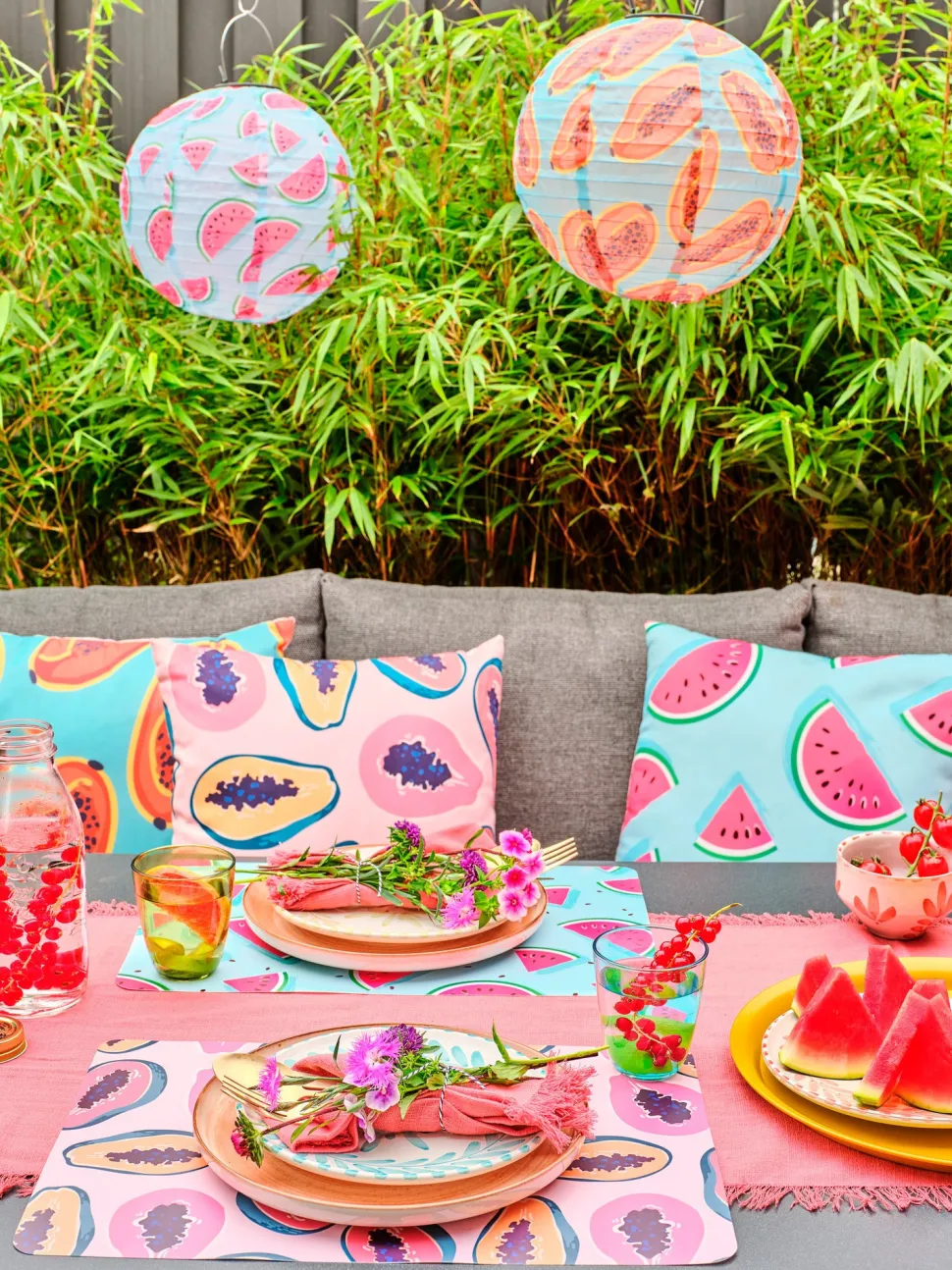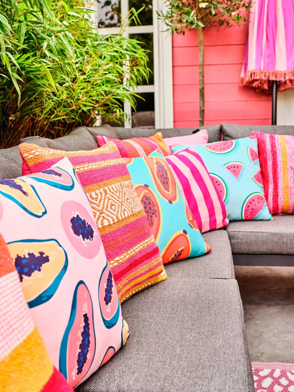 Willst du deinen Garten oder dein Interieur verschönern? Die Dekokissen von Intratuin verleihen jeder Einrichtung eine besondere Atmosphäre. Das Dekokissen Surya von Intratuin besteht aus Polyester und hat ein Muster, das farbenprächtige Papayas zeigt.