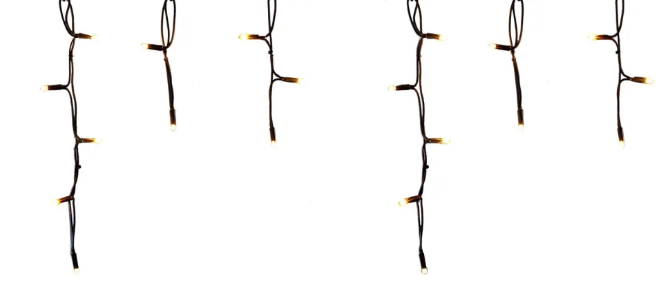 Wunderschöne Eisregen-Lichterkette ‚Connect de luxe‘ mit 100 warmweißen LED-Lämpchen, die sich über 30 Stränge mit einer Länge von 35 cm verteilen. Die Gesamtlänge der Eisregen-Lichterkette beträgt 4 m. Das Kabel ist mit Gummi ummantelt.