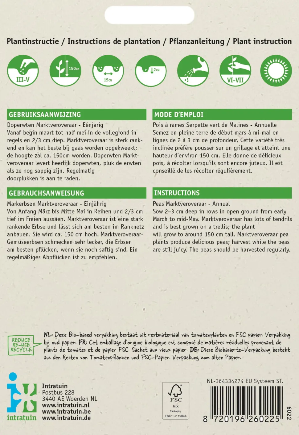 | Botanischer Pflanzenname | Pisum sativum ‚Marktveroveraar‘ |