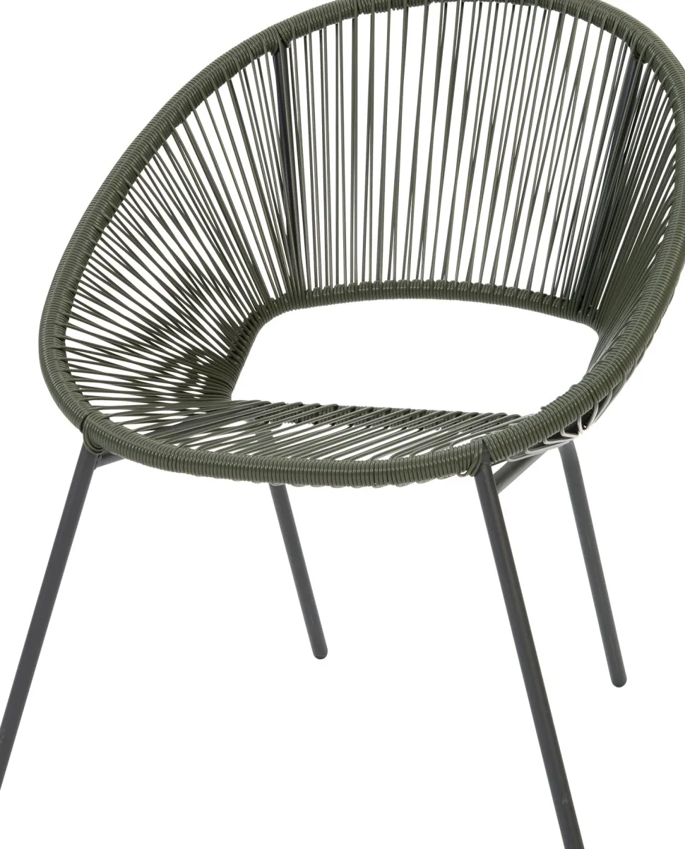 Der Gartenstuhl ‚Tess‘ von Intratuin ist mit seiner Bespannung ein toller Blickfang, für den sich garantiert ein Plätzchen auf deinem Balkon oder deiner Terrasse finden lässt. Das einzigartige Design mit verspielten Rundungen und trendigen Farben verleihen dem Gartenstuhl seinen einzigartigen Charakter. Das Gestell ist aus beschichtetem Stahl in der Farbe Anthrazit gefertigt und die Sitzfläche ist mit einem armeegrünen Draht bespannt. Dieser Materialmix sorgt für einen besonderen Twist!