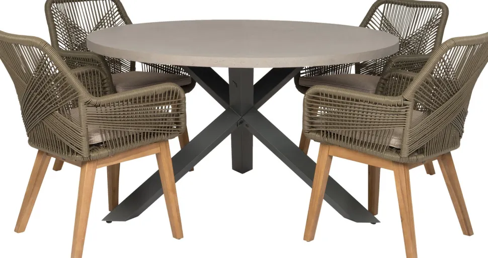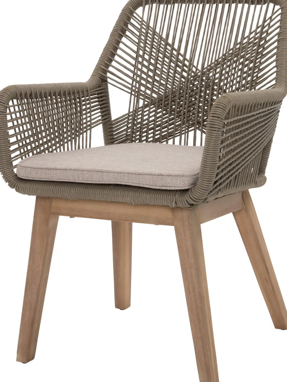 Genieße gemütliche Momente im Garten mit dem Intratuin Gartenstuhl Wout in Olivgrün. Dieser elegante Gartenstuhl kombiniert robustes Akazienholz mit einem hellen Teak-Look und geflochtenem Seil in einem satten Olivgrün. Das einzigartige Design mit luftiger Sitzfläche und bequemen Armlehnen sieht nicht nur cool aus, sondern bietet dank des mitgelieferten grauen Sitzkissens auch optimalen Sitzkomfort. Mit den Maßen 64,5 x 60 x 84,5 cm passt dieser Stuhl perfekt an jeden Esstisch in deinem Außenbereich.