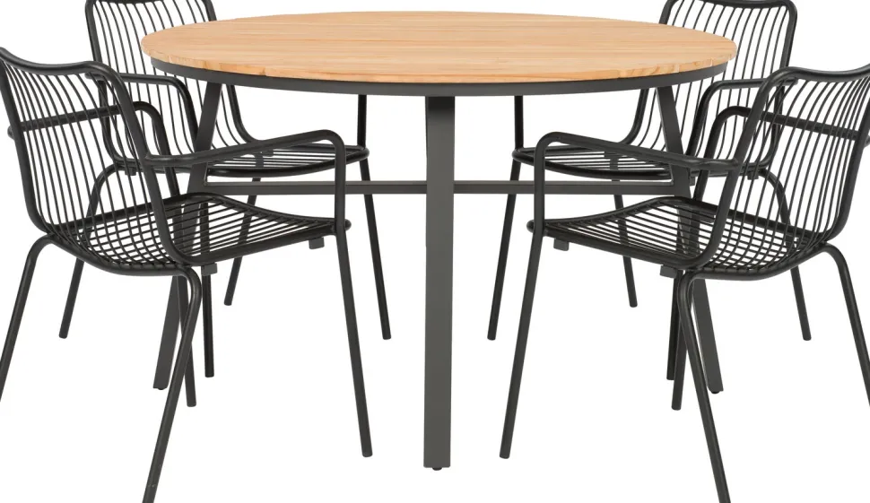 Bist du auch so ein Fan von langen Sommerabenden im Freien? Mit diesem modernen Gartentisch Flore von Intratuin wird das gemütliche Essen dank seines schönen runden Designs zu einem wahren Vergnügen. Der Gartentisch Flore hat ein Gestell aus Aluminium, das mit einer schützenden Pulverbeschichtung in Anthrazit versehen ist, und eine natürliche Tischplatte aus robustem Teakholz, die einen schönen Kontrast bildet.