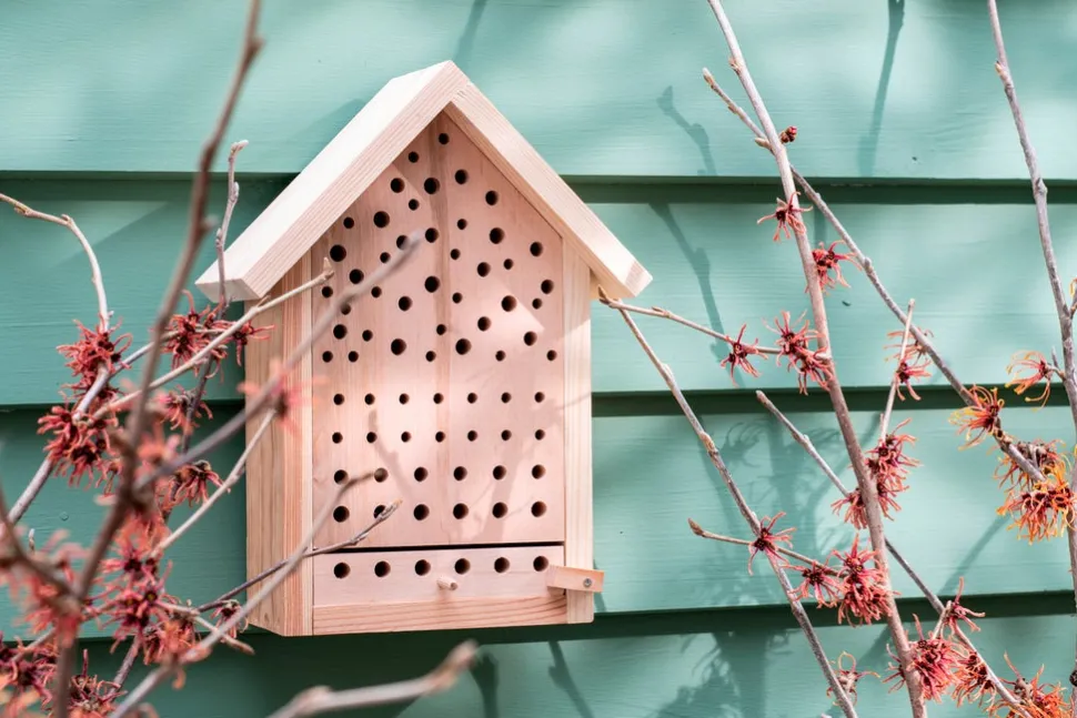 An der Unterseite des Insektenhotels befindet sich eine kleine Schublade zur Beobachtung der Insekten.