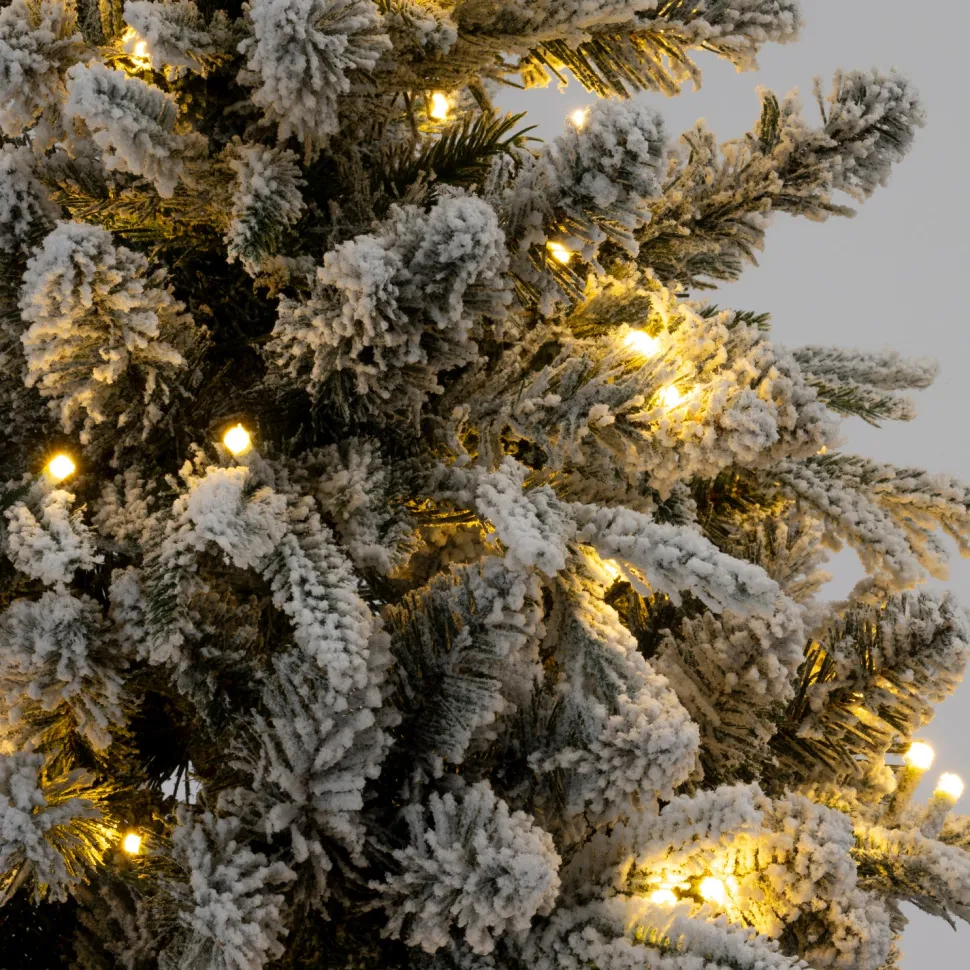 Dieser elegante künstliche Weihnachtsbaum mit einer Höhe von 210 cm sorgt für weihnachtliche Stimmung in deinem Zuhause. Mit einem Durchmesser von 79 cm und seiner schlanken, realistischen Form passt er perfekt in große und kleinere Räume. Die Zweige sind mit einer wunderschönen Schneeschicht bedeckt und mit 250 warmweißen LED-Lichtern ausgestattet, die eine gemütliche und stimmungsvolle Atmosphäre schaffen. Der Baum steht sicher auf einem dekorativen Sockel, der ihm ein natürliches, rustikales Aussehen verleiht. Dank des langlebigen Materials bleibt der Baum über Jahre hinweg schön, und du brauchst keine Zeit für das Aufhängen von Lichtern einplanen. Eine stilvolle, pflegeleichte Lösung für ein festliches Weihnachtsfest!