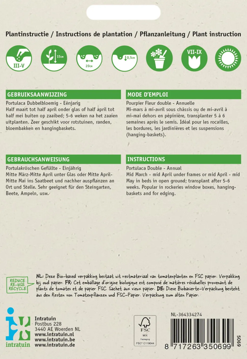 Die Portulak-Samen keimen leicht bei Zimmertemperatur und können von Mitte Februar bis Ende Mai in einer Anzuchtschale im Haus oder im Gewächshaus ausgesät werden. Sobald die jungen Portulakpflanzen eine hantierbare Größe erreicht haben, kannst du sie pikieren. Wenn du die Portulakröschen toppst, verzweigen sie sich besser und blühen üppiger. So sind die Portulakröschen schöne nostalgische Pflanzen zur Einfassung eines Blumenbeetes oder für Pflanzgefäße. Diese einjährige Pflanze blüht bis zum Herbst, dann stirbt sie ab. Am Abend und bei dunklem Wetter schließen sich die Blüten.