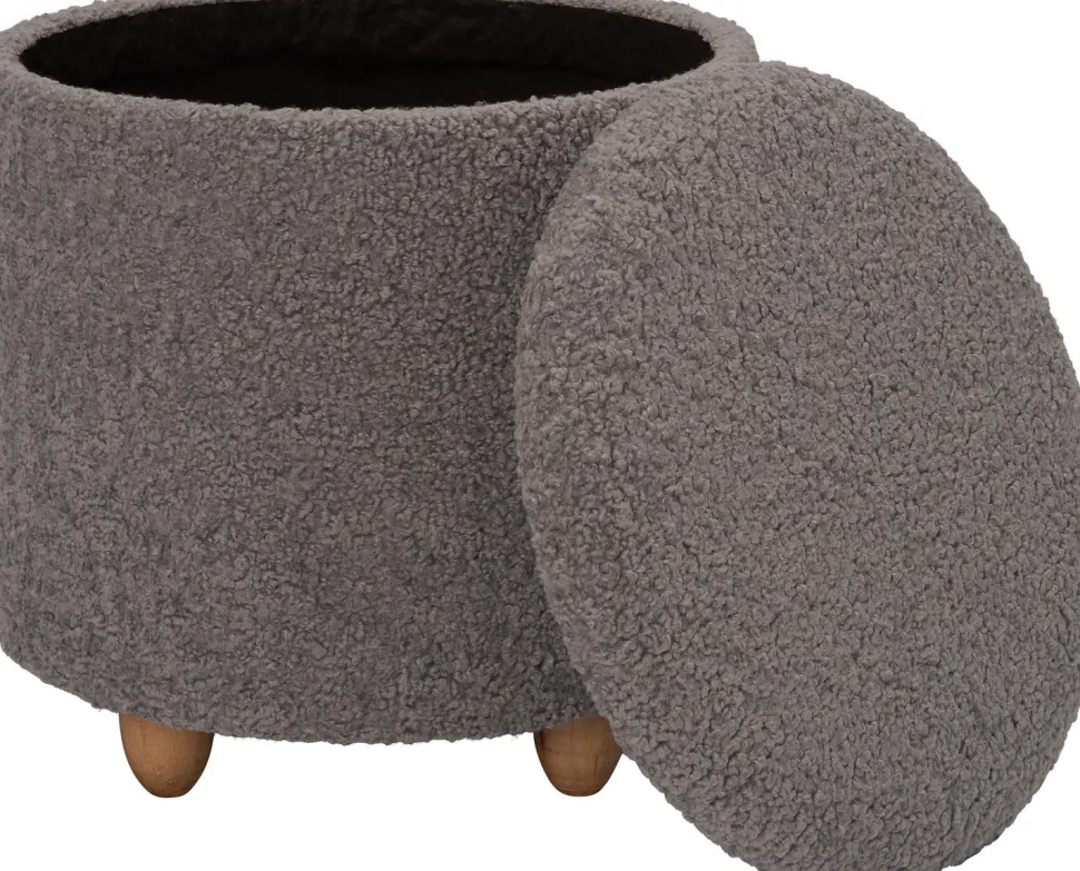 Du kannst den Pouf natürlich auch als Hocker nutzen, bequem die Füße darauf ablegen oder ihn als Beistelltisch umfunktionieren. Stelle ein schönes, passendes Tablett mit Kerzen, Accessoires, Büchern oder Zeitschriften darauf, und du hast einen tollen Blickfang in deiner Wohnung, der garantiert nicht unbemerkt bleiben wird. Der runde Pouf ist aus MDF gefertigt und mit einem weichen Stoff der Farbe Grau bezogen.