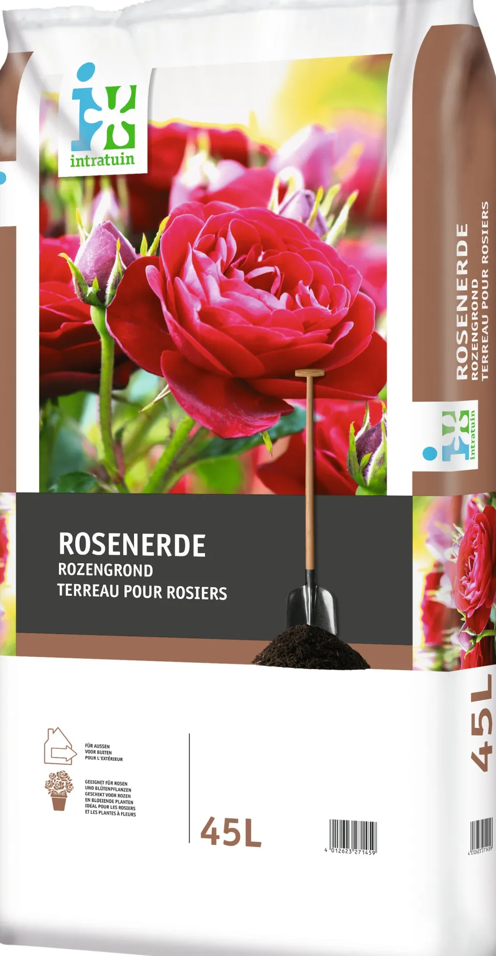 Die Intratuin Rosenerde ist ein gebrauchsfertiges Kultursubstrat für die Aufzucht und Pflege von Rosen in Kästen und Schalen sowie für das Anlegen von Beeten. Deinen Rosen soll es in jeder Lebenslage an nichts mangeln. Der enthaltene Vulkanton und der Humusanteil unserer Rosenerde schaffen beste Bedingungen für ein schnelles Anwachsen. Wasser und Nährstoffe werden gut dosiert und dem Bedarf entsprechend an die Pflanzen weitergegeben. Außerdem fördern die Zusätze eine gute Durchwurzelung. Die Zusammensetzung der Intratuin Rosenerde ist strukturstabil: Deine Rosen haben dauerhaft einen guten Halt.