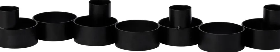 Dieser Halter in Schwarz bietet Platz für drei Teelichter und/oder 4 Tafelkerzen. Der Halter ist aus Metall gefertigt und misst 31 x 7,5 x 4 cm.