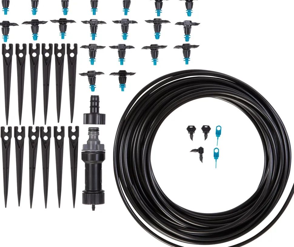 Das Set enthält einen Wasseranschluss und das System hat eine Länge von 10 m.