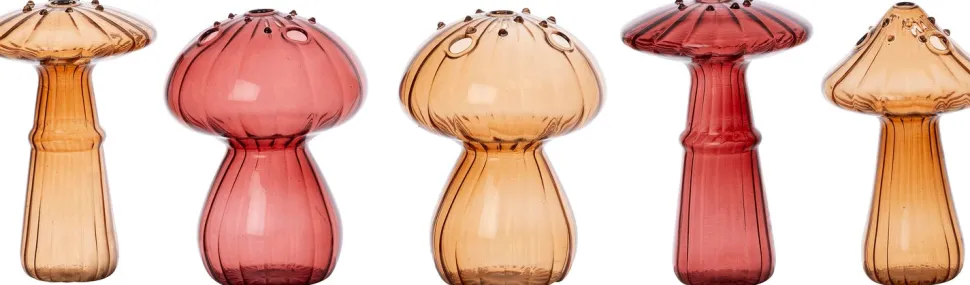 Mit dieser Vase von Intratuin zauberst du eine märchenhafte Atmosphäre in dein Interieur! Diese Vase hat die Form eines Pilzes und ein lebendiges Relief. Sie ist aus hochwertigem Glas gefertigt und strahlt sowohl Langlebigkeit als auch Raffinesse aus. Sie eignet sich perfekt für deine Lieblingsblumen oder als eigenständige Dekoration auf einem Tisch, Regal oder einer Fensterbank. Die warme rote Farbe macht sie zu einem einzigartigen und charmanten Blickfang für jeden Raum! Die Maße sind 8 x 8 x 11,5 cm.