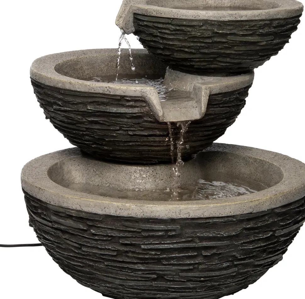 Hast du keinen Platz für einen Gartenteich, willst aber trotzdem nicht auf das entspannende Geräusch von plätscherndem Wasser im Garten verzichten? Dann ist ein Wasserspiel oder Zierbrunnen die Lösung! Mit einem Wasserspiel kannst du auf kreative Weise Wasser in deinem Garten oder auf deiner Terrasse ergänzen. Das sorgt für zusätzliche Dimension und Atmosphäre im Garten! Das Wasserspiel ‚Norfolk‘ ist aus Polyresin in der Farbe Grau gefertigt und hat eine robustes und gleichermaßen rustikales Aussehen. Das Wasserornament besteht aus 3 großen Schalen, durch die das Wasser ruhig strömt. Das erzeugt ein entspannendes Plätschern im Garten, das dich im Nu zur Ruhe kommen lässt.
