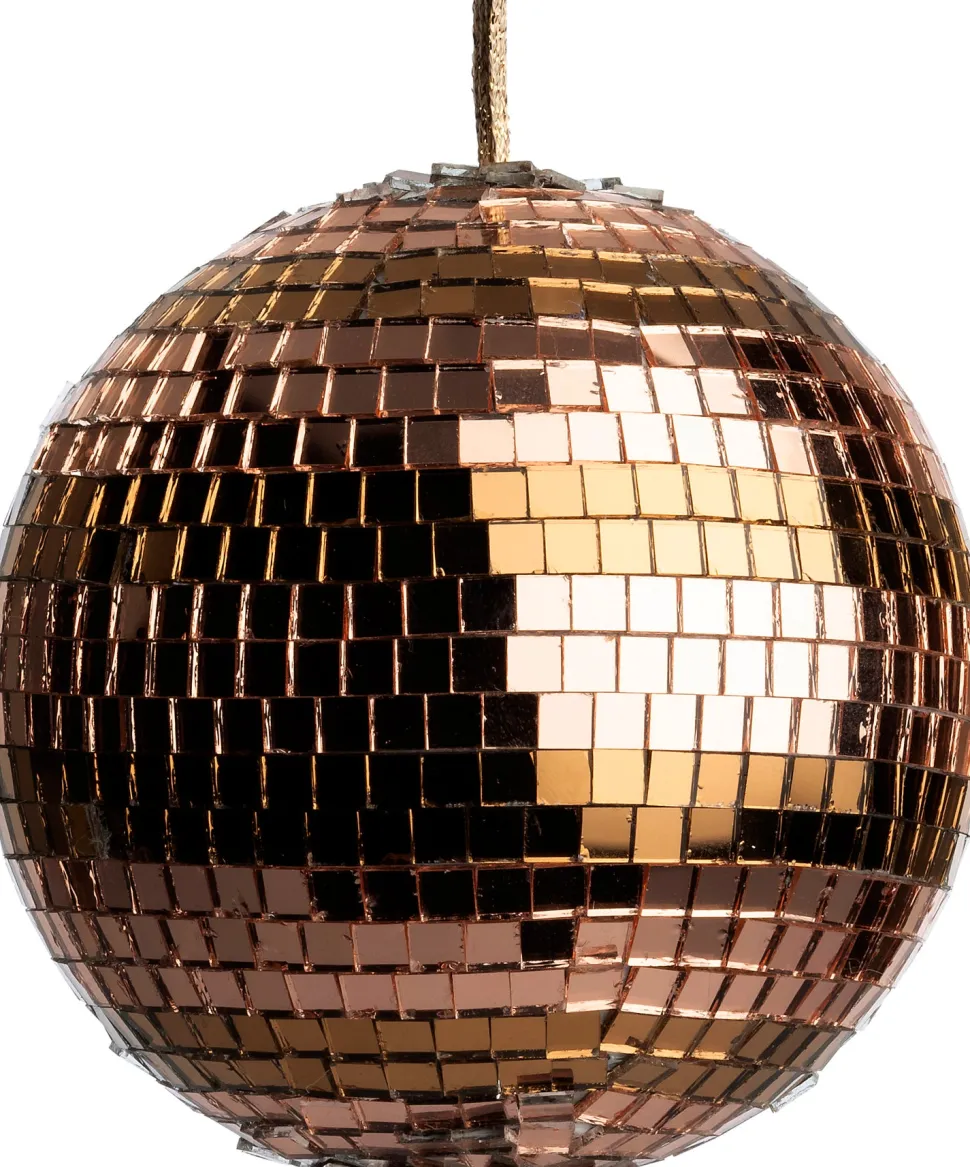 Mit dieser Weihnachtskugel Disco bringst du ein bisschen extra Stimmung und Glanzpunkte in dein Zuhause! Die gold- und kupferfarbene Kugel besteht aus lauter kleinen Spiegeln, die das Licht deiner Lichter wunderschön im ganzen Wohnzimmer reflektieren. Diese Kugel hat einen Durchmesser von 10 cm. Sie ist in verschiedenen Größen erhältlich.