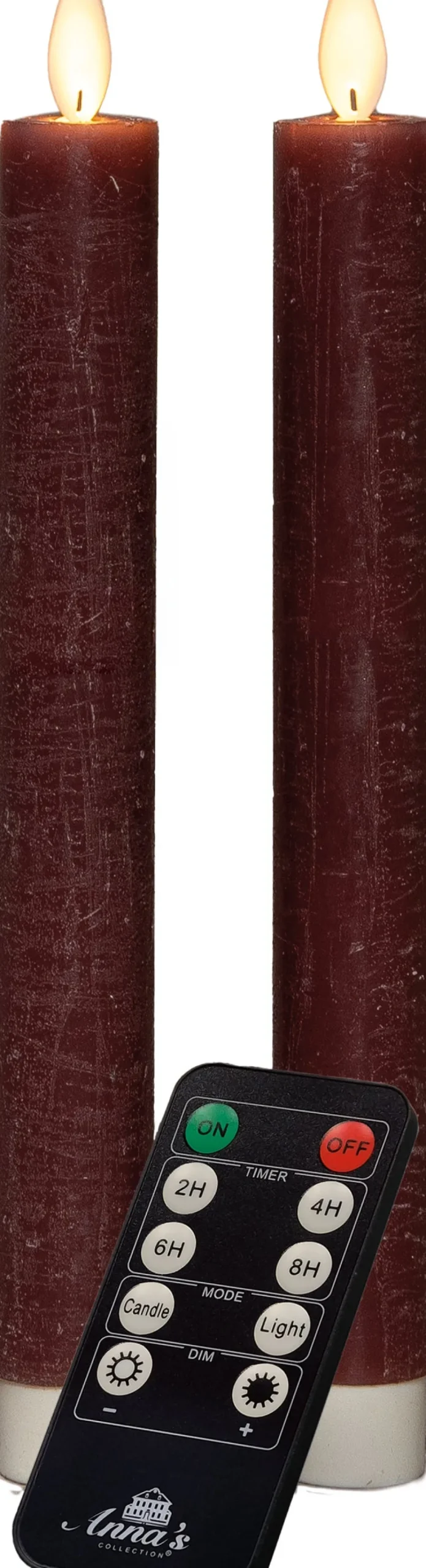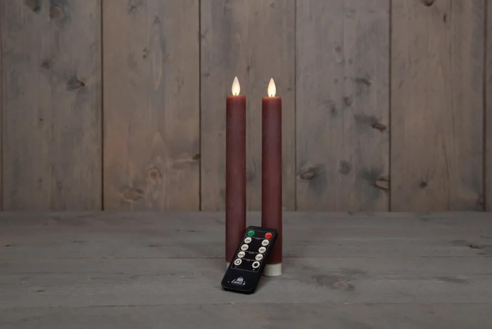 Diese 2 Stabkerzen haben LED-Lämpchen und lassen sich bequem mit der mitgelieferten Fernbedienung ein- und ausschalten. Die LED-Stabkerzen in der Farbe Rosa sind batteriebetrieben, haben eine bewegliche Flamme und sind 23 cm lang. Erhältlich in verschi