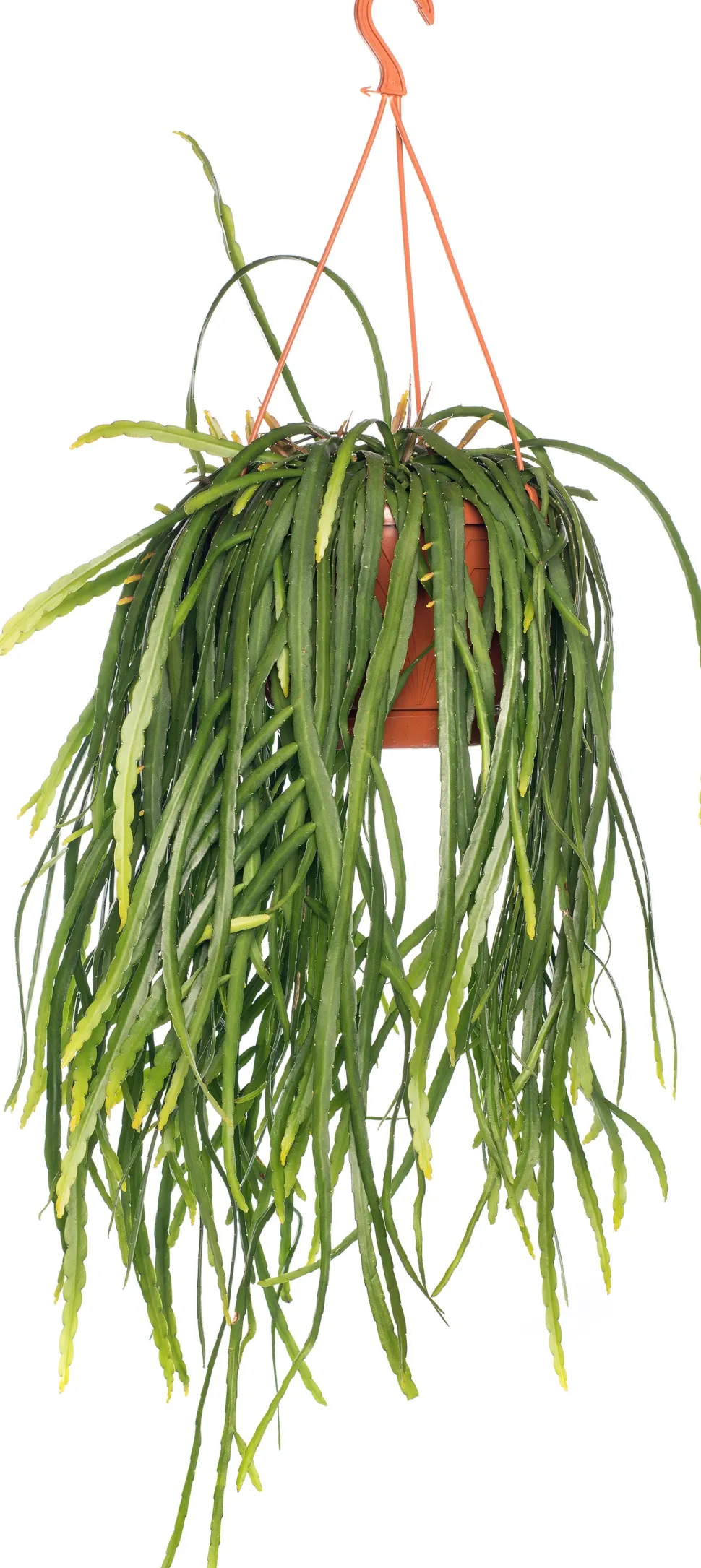 Diese Pflanze, die offiziell zu den Kakteen gehört, wächst als Epyphit auf hohen Bäumen, wo sie mit langen Schnüren herunterhängt. Im Haus ist es eine extrem unkomplizierte Hängepflanze, die so Einiges haben kann und die gern in der Sonne hängen.