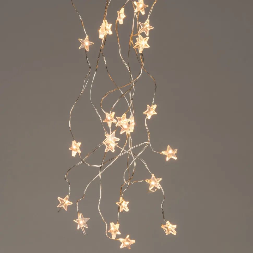 Lichtkaskade mit Sternchen, 8 x 0,5 m, warmweiße LEDs, batteriebetrieben, silber