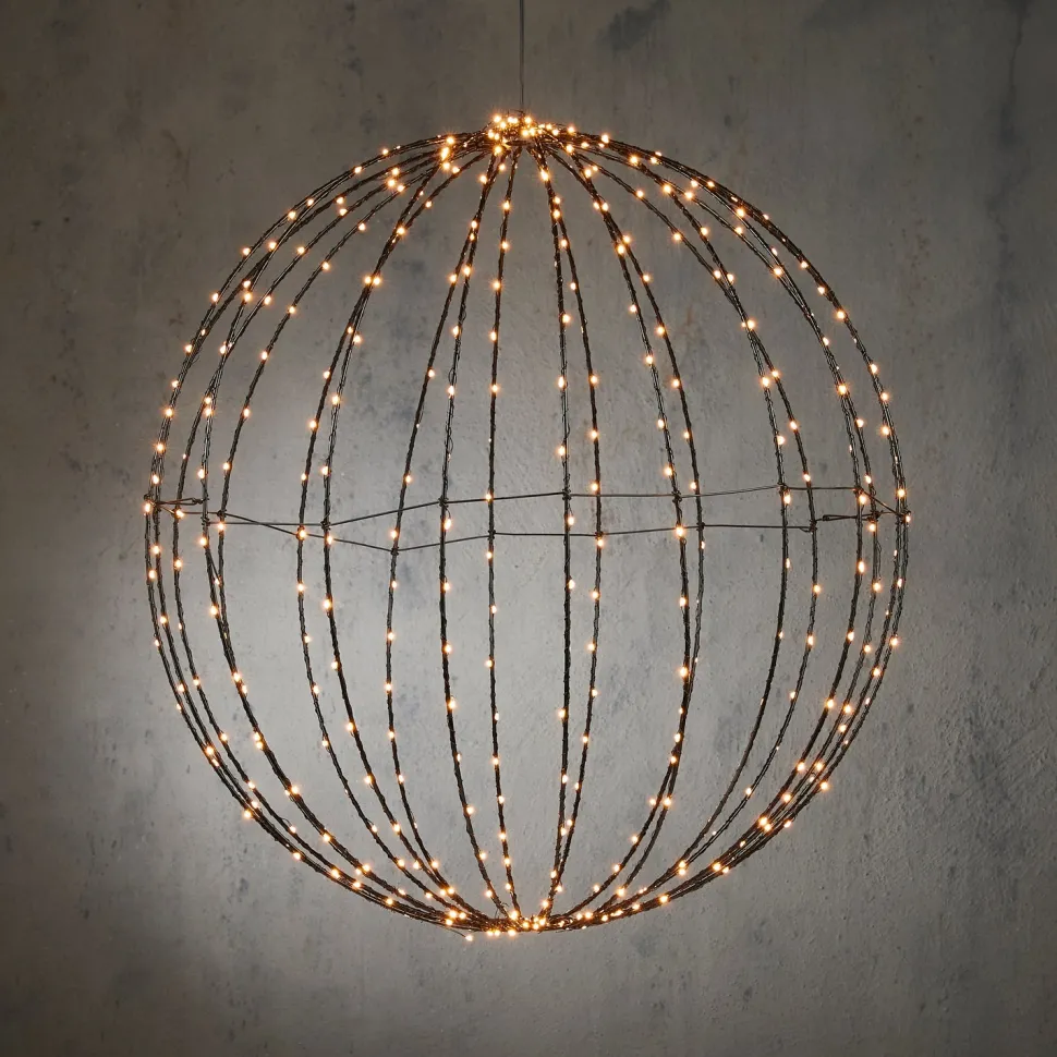 Gestalte deinen Garten mit der Weihnachtsbeleuchtung von Luca Lighting besonders gemütlich, zum Beispiel mit dieser beleuchteten Hängelämpe! Das Gestell ist aus Metall gefertigt und hat eine schwarze Farbe. Dort herum ist ein Kabel mit insgesamt 400 LED-Leuchten gewickelt, die ein warmweißes Licht abgeben. Mit der Zeitschaltuhr kann das Licht automatisch ein- und ausgeschaltet werden wie praktisch! Der mitgelieferte Adapter mit 3 Meter Anschlusskabel ist zudem spritzwassergeschützt. Hast du schon eine Idee, wo du die Lichtkugel aufhängst? Die dekorative Kugel hat einen Durchmesser von 60 cm.