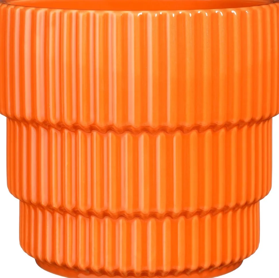 Der Blumentopf Cella von Mica Decorations ist eine Kombination aus Stil und Funktionalität. Er ist in einem auffälligen Orange gehalten und hat ein einzigartiges, geschichtetes Design mit vertikalen Linien. Er besteht aus hochwertiger Keramik und ist die perfekte Basis für all deine Lieblingspflanzen.