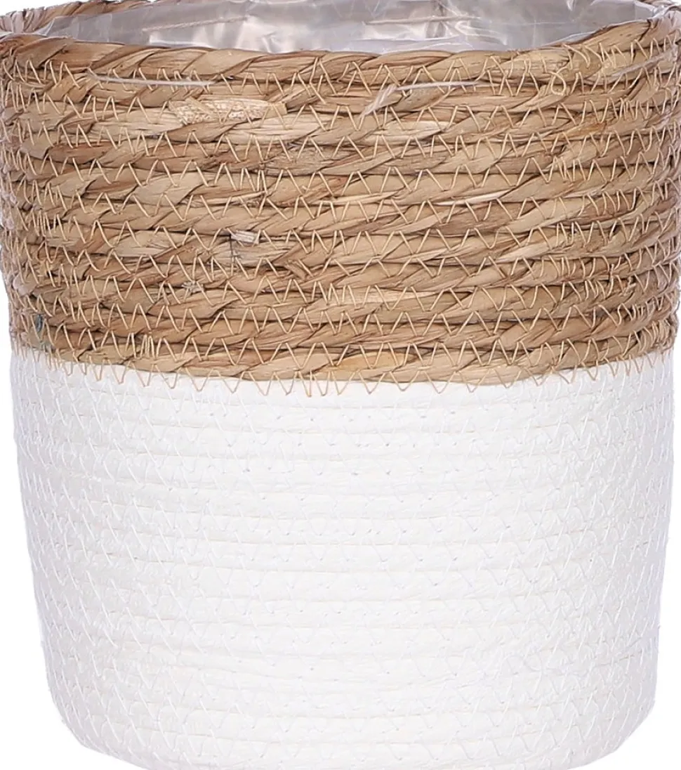 Der Pflanzkorb ‚Rachel‘ aus der Kollektion von Mica Decorations ist funktional und verleiht deiner Einrichtung zugleich einen schönen, natürlichen Touch. Der Übertopf-Korb ist nämlich aus Seegras gefertigt und somit auch eine umweltfreundliche Wahl. Das natürliche Element ist auch im oberen Teil des Pflanzkorbes zurückzufinden, während der untere Teil in Weiß gehalten ist. An der Innenseite ist der Korb mit Plastik ausgekleidet, sodass der sich gut als Übertopf oder Pflanzkorb für Pflanzen eignet, aber man kann ihn ebenso als Aufbewahrungskorb nutzen. Pflanzkorb ‚Rachel‘ ist in verschiedenen Größen und Farben erhältlich. Dieser Korb hat einen Durchmesser von 14 cm und ist ebenfalls 14 cm hoch.