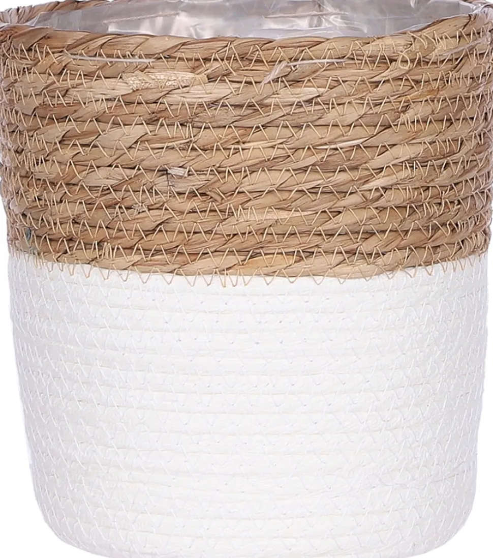 Der Pflanzkorb ‚Rachel‘ aus der Kollektion von Mica Decorations ist funktional und verleiht deiner Einrichtung zugleich einen schönen, natürlichen Touch. Der Übertopf-Korb ist nämlich aus Seegras gefertigt und somit auch eine umweltfreundliche Wahl. Das natürliche Element ist auch im oberen Teil des Pflanzkorbes zurückzufinden, während der untere Teil in Weiß gehalten ist. An der Innenseite ist der Korb mit Plastik ausgekleidet, sodass der sich gut als Übertopf oder Pflanzkorb für Pflanzen eignet, aber man kann ihn ebenso als Aufbewahrungskorb nutzen. Pflanzkorb ‚Rachel‘ ist in verschiedenen Größen und Farben erhältlich. Dieser Korb hat einen Durchmesser von 18 cm und ist ebenfalls 18 cm hoch.