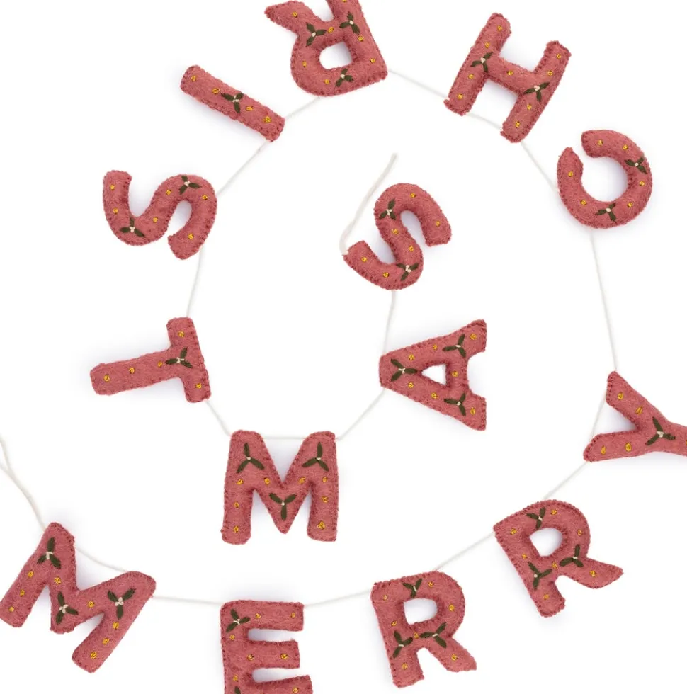 Die Weihnachtsgirlande „Merry Christmas“ von Sjaal met Verhaal (rosa, 20 x 30 x 5 cm) ist eine einzigartige, handgefertigte Weihnachtsdekoration, die dein Zuhause auf warme und bedeutungsvolle Weise schmückt. Diese fröhliche rosa Girlande mit dem Schriftzug „Merry Christmas“ ist aus 100 % Wollfilz gefertigt und bringt sofort festliche Stimmung in jeden Raum. Mit ihren kompakten Maßen von 20 x 30 x 5 cm eignet sie sich ideal zum Aufhängen an Wand, Tür, Kaminsims oder Weihnachtsbaum. Das Besondere an diesem Produkt ist, dass jedes Stück von Frauen in Nepal handgefertigt wird. Sjaal met Verhaal trägt damit zu fairen Arbeitsbedingungen und besseren Zukunftschancen bei. Handgefertigt, fair produziert und fair gehandelt: Eine Weihnachtsdekoration mit Geschichte.