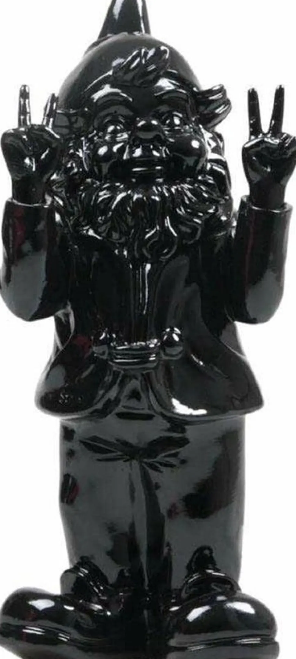 Verleihe deinem Garten mit dem Peace-Gartenzwerg von Stoobz Design eine fröhliche Note! Das fröhliche Aussehen und die auffällige schwarzen Farbe zaubern jedem, der vorbeikommt, ein Lächeln ins Gesicht.