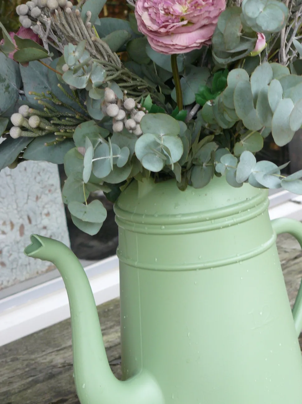Eine übergroße Kaffeekanne als Gießkanne, Funktionalität mit einer Anspielung auf die Vergangenheit. Diese grüne Gießkanne hat zwei Griffe, damit sie gut in der Hand liegt. Die Gießkanne Lungo (12 l) ist zu 100% recycelbar und ein Entwurf von Davy Grosemans.